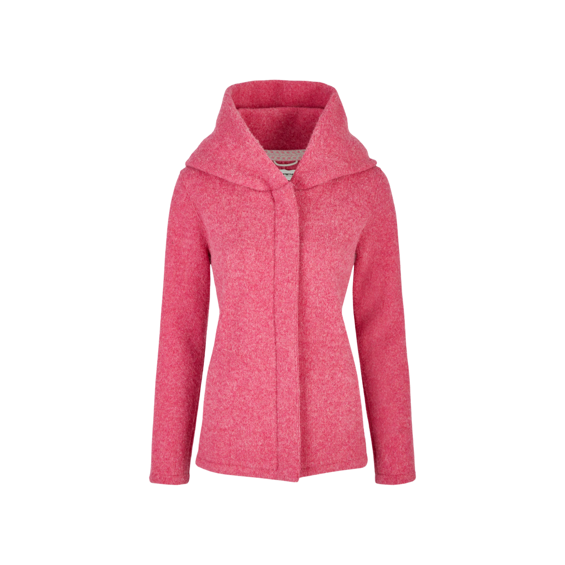 HENRIETTA ist eine Walkjacke aus 100% Shetlandschurwolle. Der sportive Look wird durch die oversized Kapuze...