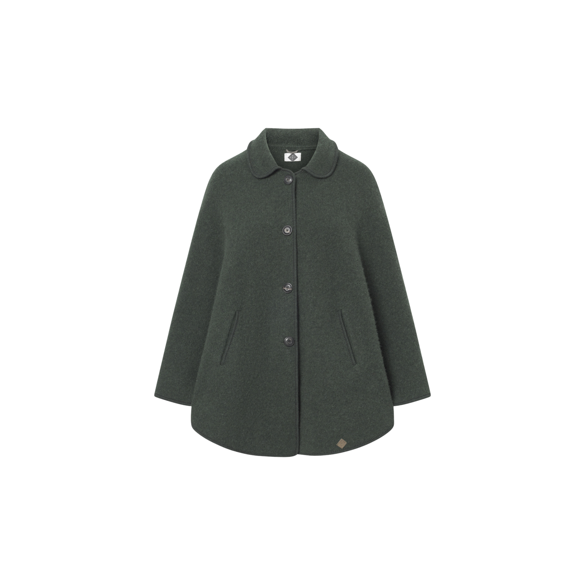 Das Cape Irene aus hochwertigem Shetland-Walk, bietet natürliche Wärme und Langlebigkeit. Es verfügt einen charmanten Bubi-Kragen der einen Hauch von vintage-inspirierter Raffinesse verleiht. Mit seiner fließenden Silhouette und der Liebe zum Detail ist das Irene-Cape perfekt zum Layering an kühlen Tagen und wertet jedes Outfit mühelos mit Anmut und Stil auf.