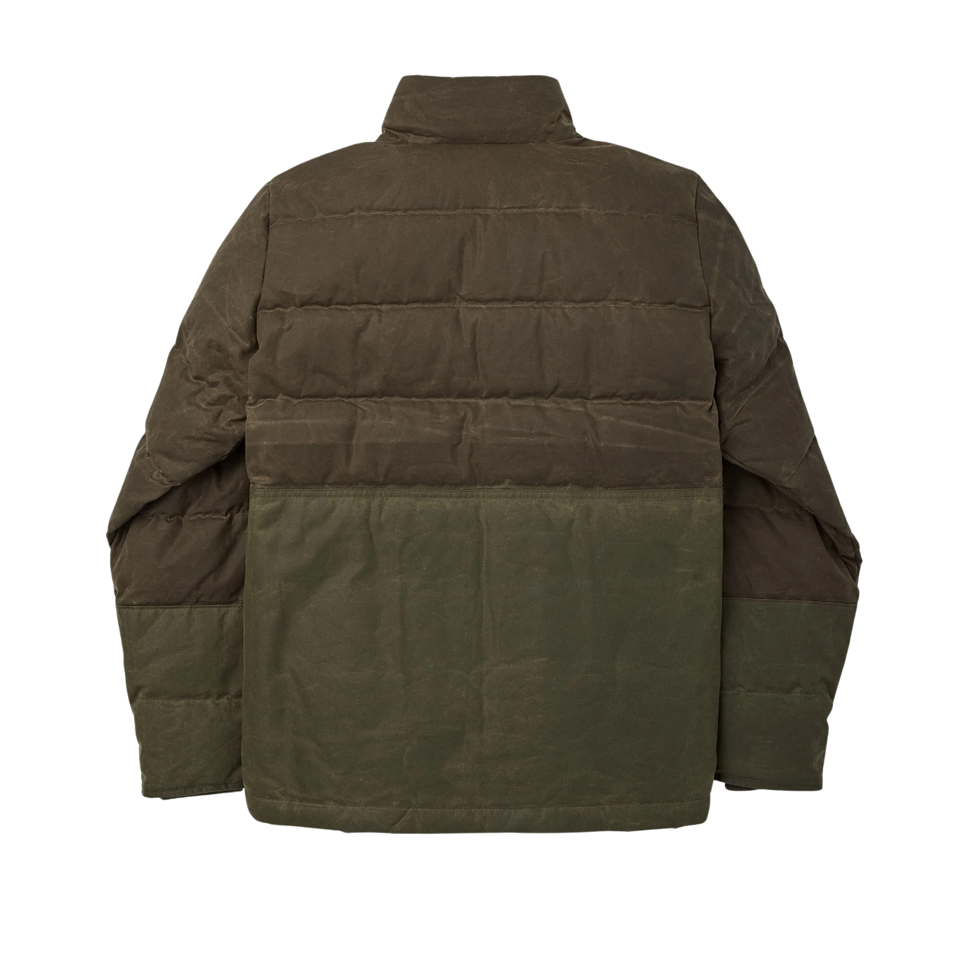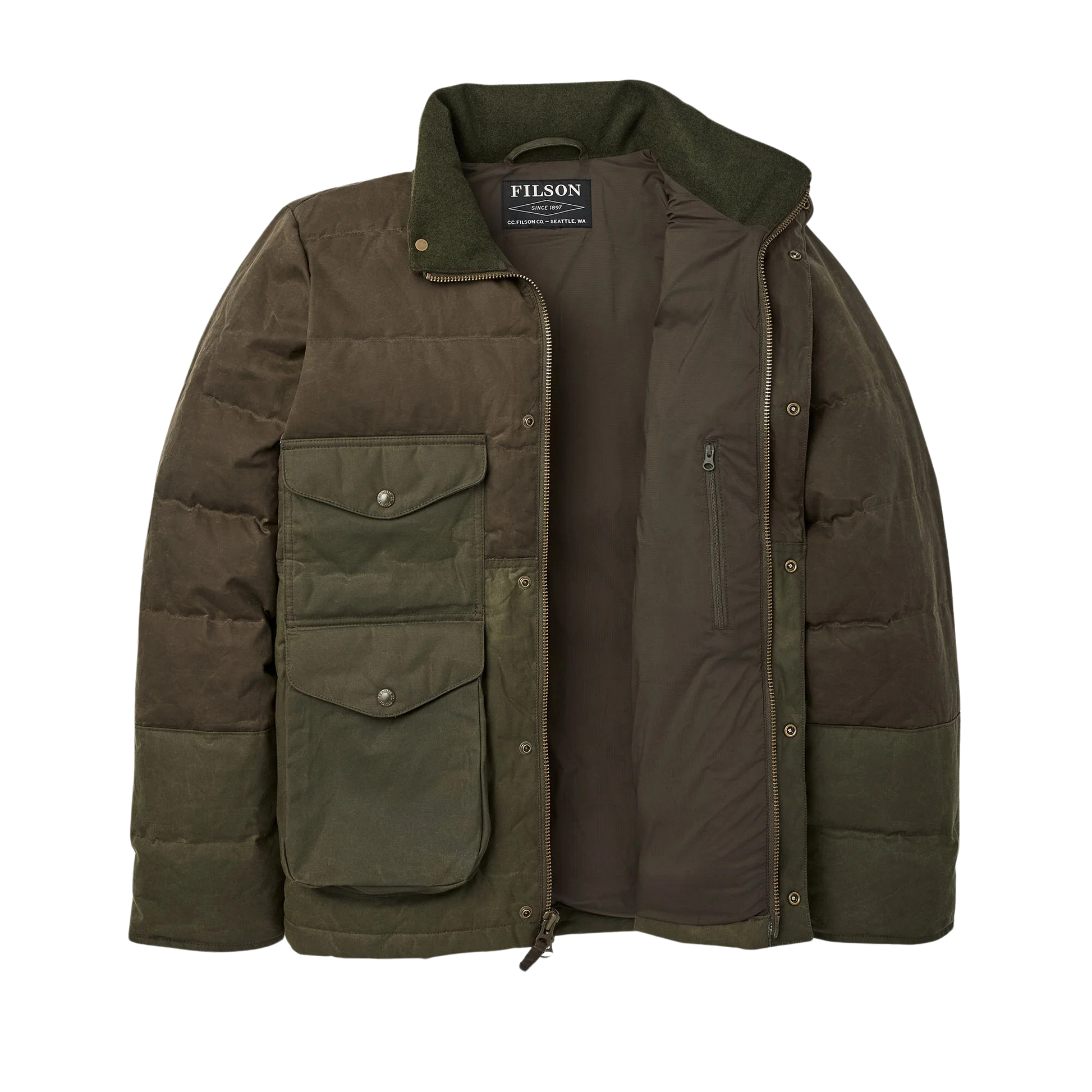 Die Down Cruiser Jacket kombiniert Filsons bewährte Materialien mit modernster Isolierung zu einer Jacke, die jedem noch so nassen und kalten Sturm standhält. Gänsedaunen aus verantwortungsvollen Quellen, die leichteste und wärmste Isolierung der Natur, speichern die Körperwärme wie nichts anderes. Cover Cloth und Shelter Cloths mit Oil Finish halten den Regen ab, damit die Daunenisolierung ihre Arbeit tun kann. Der Nacken und die Handwärmertaschen sind mit Merinowolle ausgekleidet, die auch bei Nässe wärmt. Wetter hin oder her - diese Jacke schützt Sie.