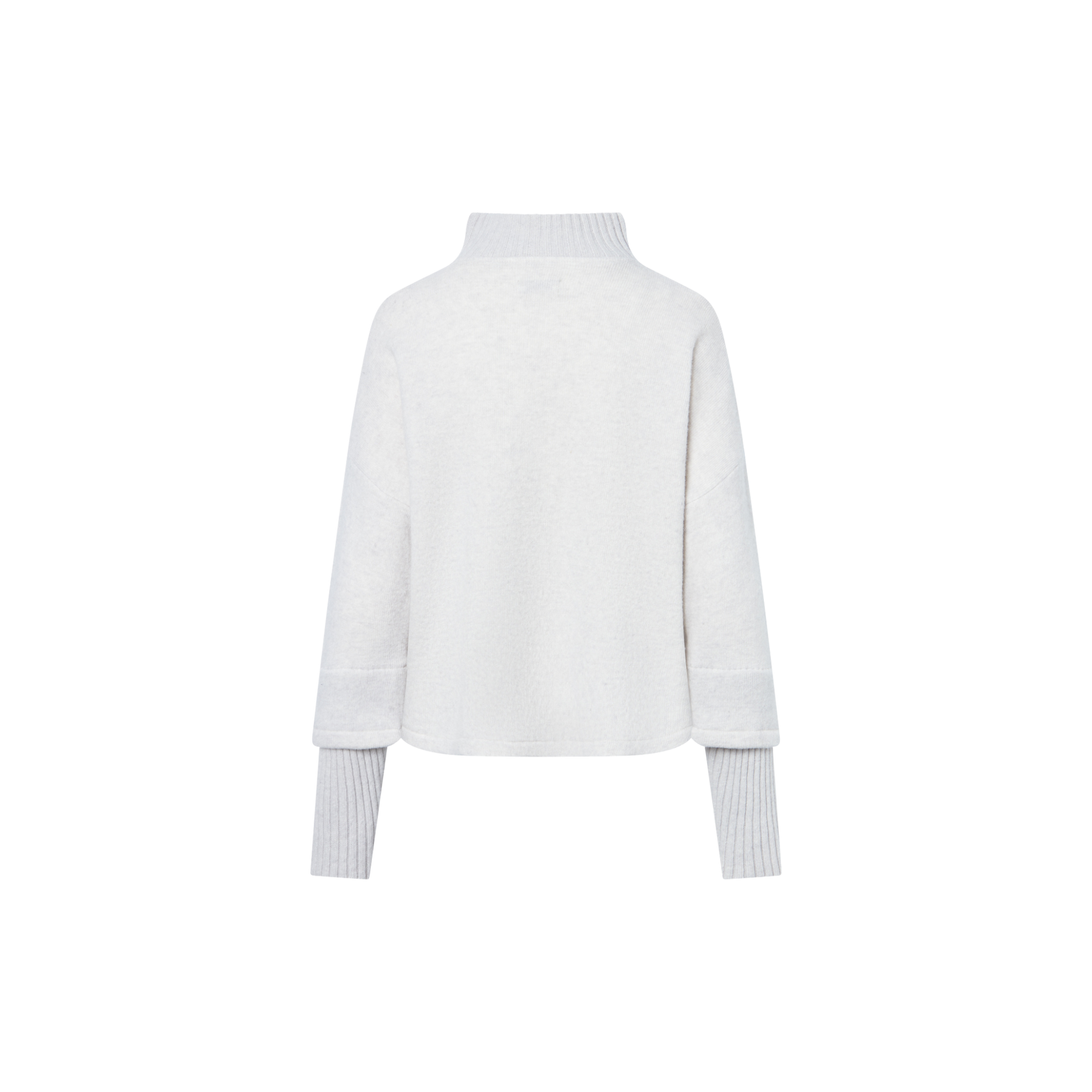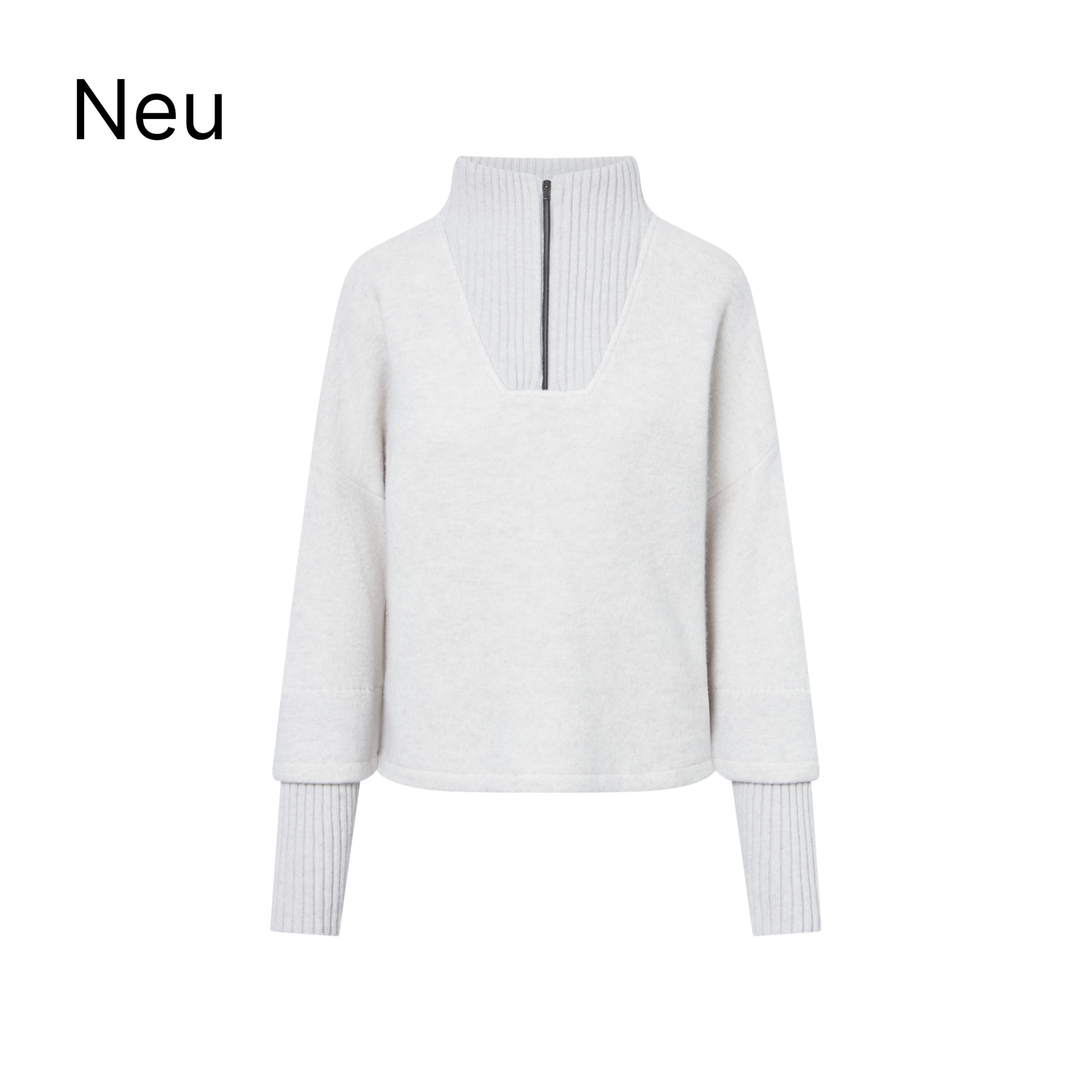 NAOMI – Ein gemütlicher Pullover mit Troyer-Kragen und funktionalem Reißverschluss für vielseitige Styling-Möglichkeiten. Die Ärmel und der Kragen sind mit Bündchen und einer Faux-Rippenstruktur versehen, die diesem bequemen und stilvollen Stück eine moderne, strukturierte Note verleihen. Gestrickt in Wörgl, Tirol.