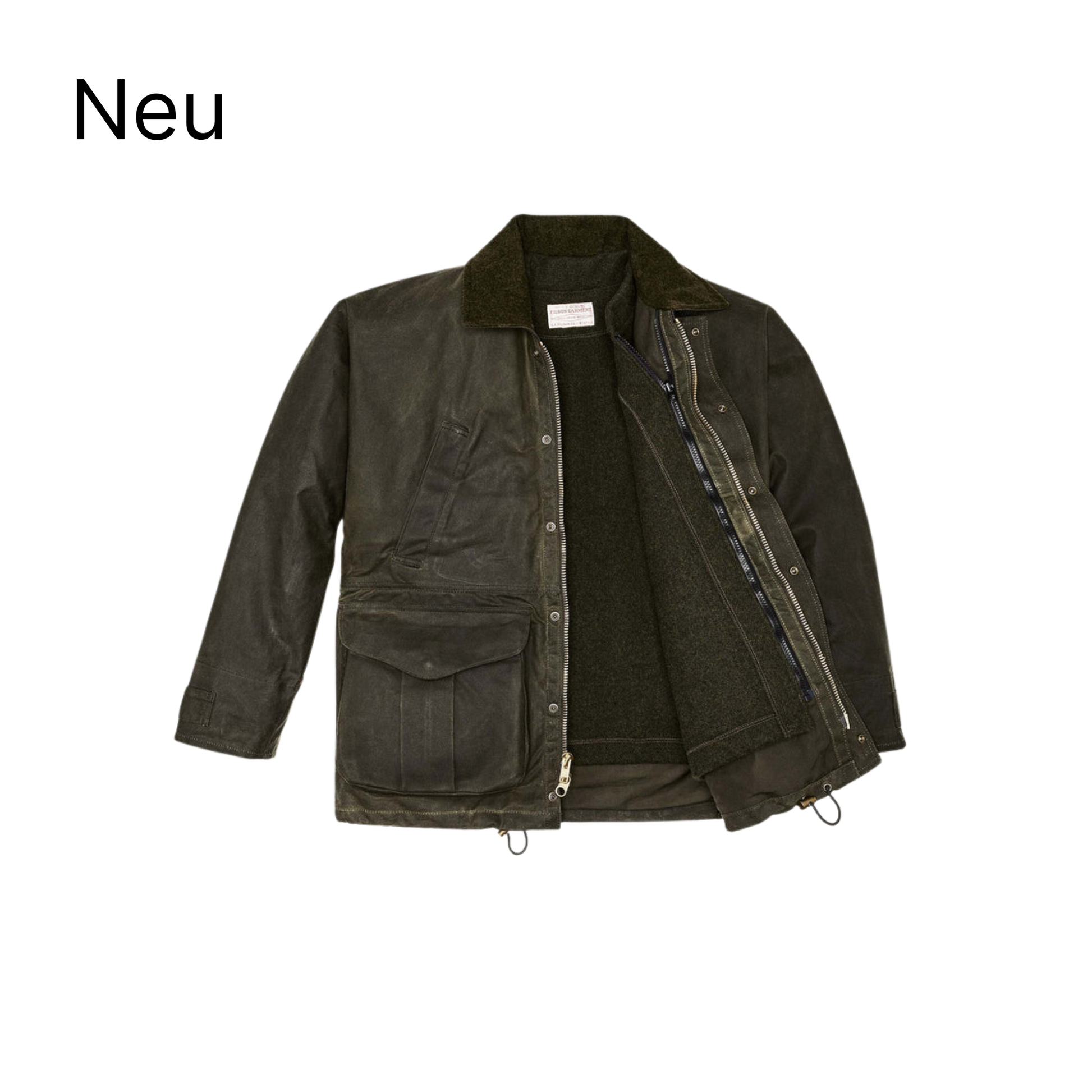 Die Filson Tin Cloth Field Jacket ist ein bewährter Klassiker, der sich durch robuste Strapazierfähigkeit und vielseitige Verwendbarkeit auf dem Feld und bei der Arbeit auszeichnet. Hergestellt aus unserem charakteristischen ölbehandelten Tin Cloth, das Regen, Schnee, Dornen und Abrieb wie kein anderes Gewebe abweist.