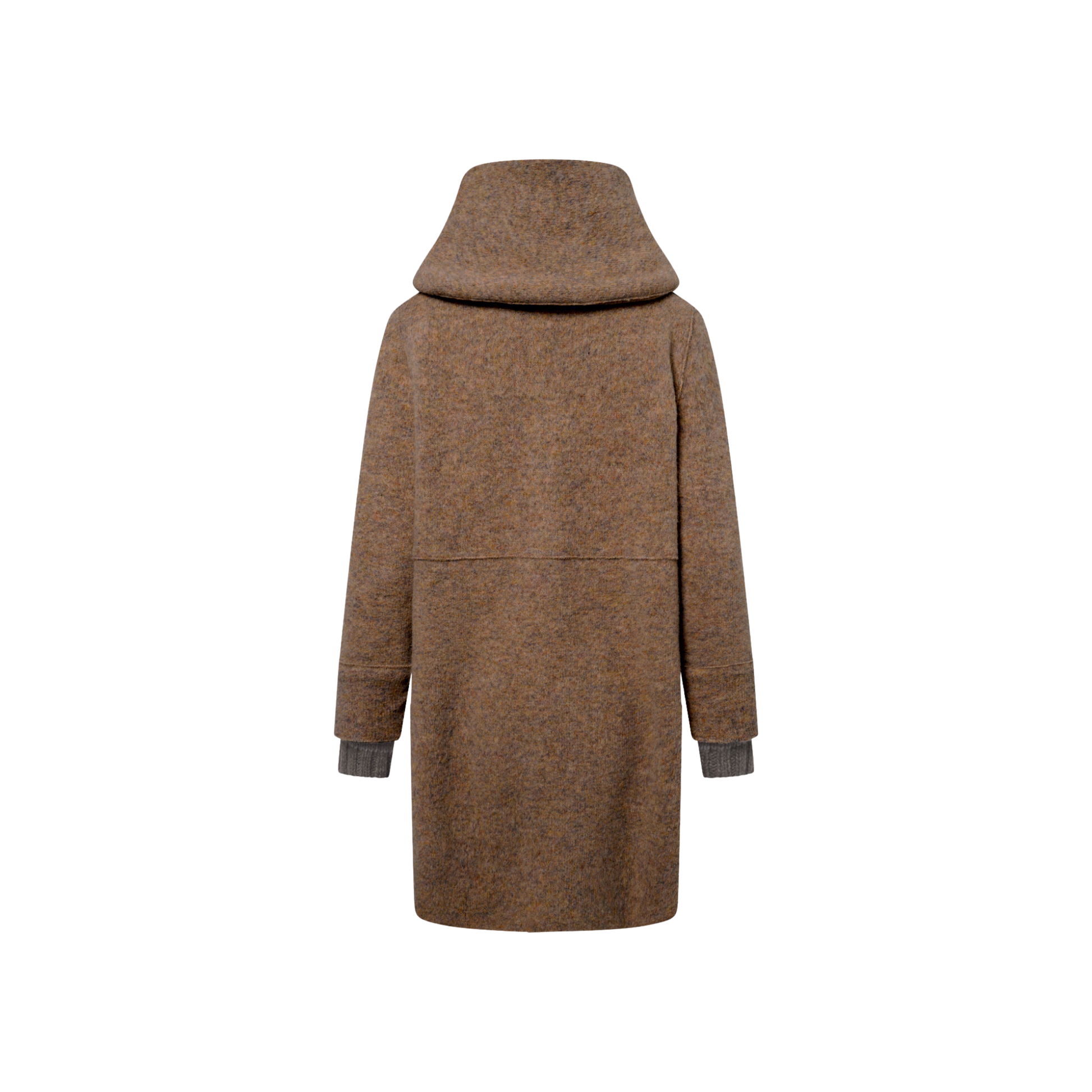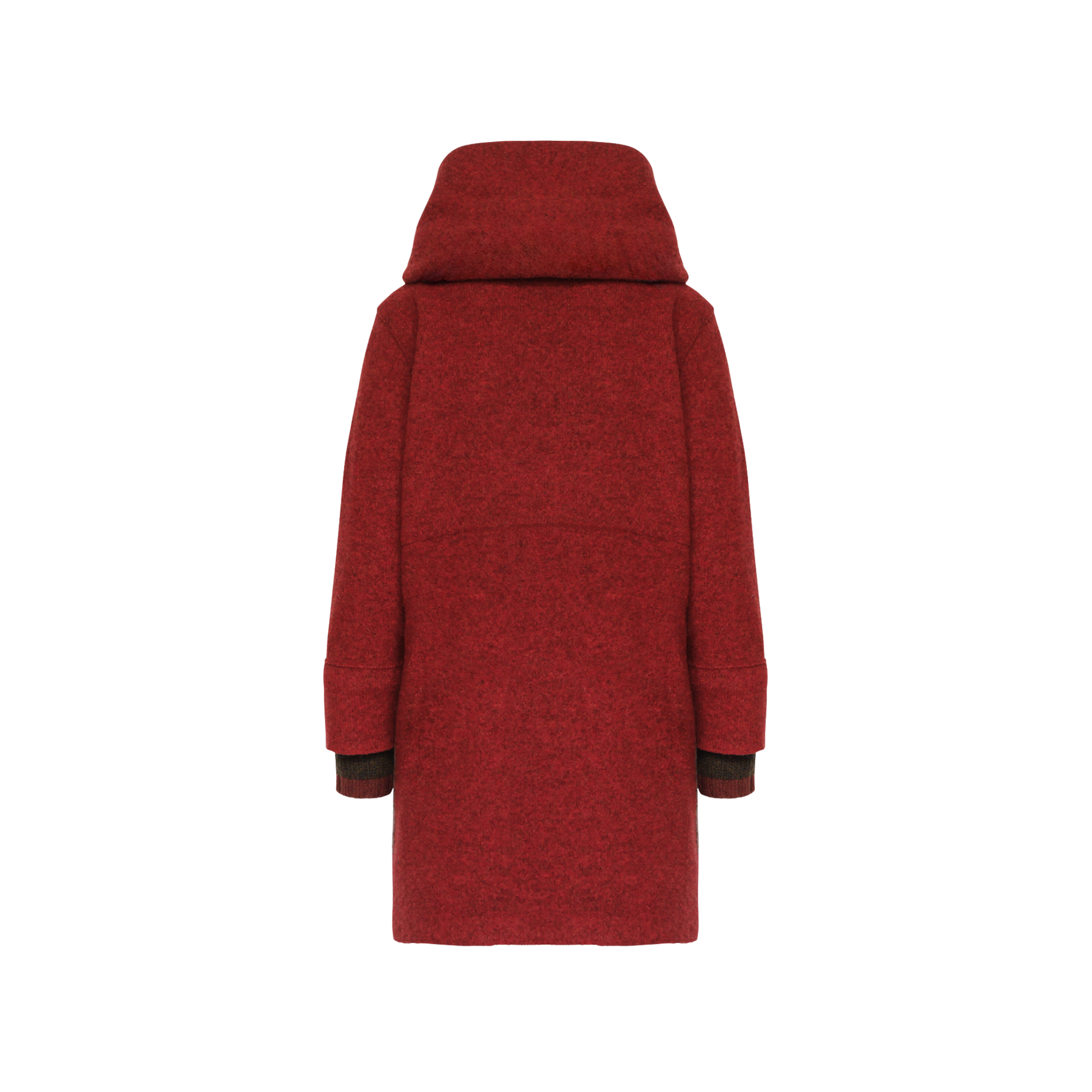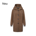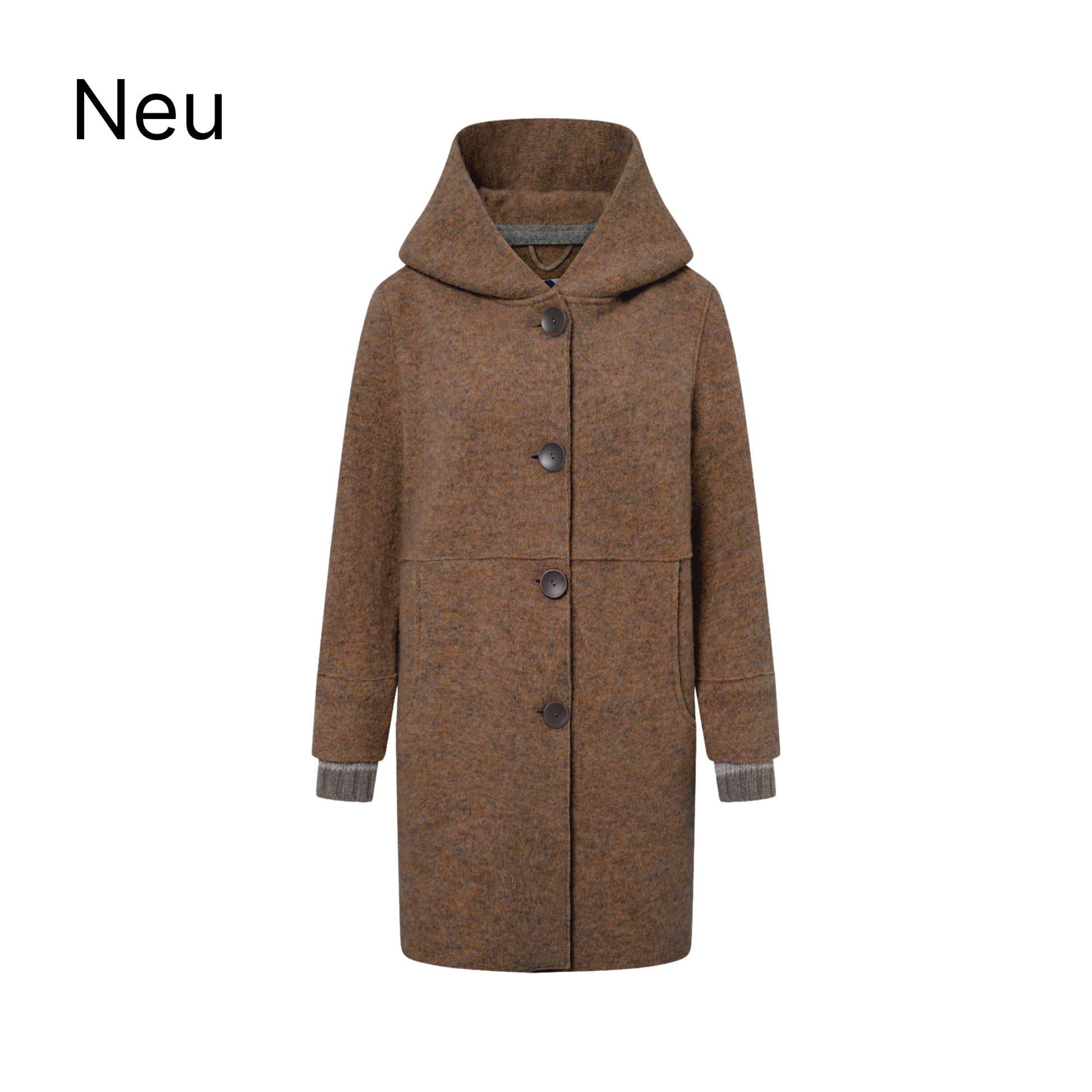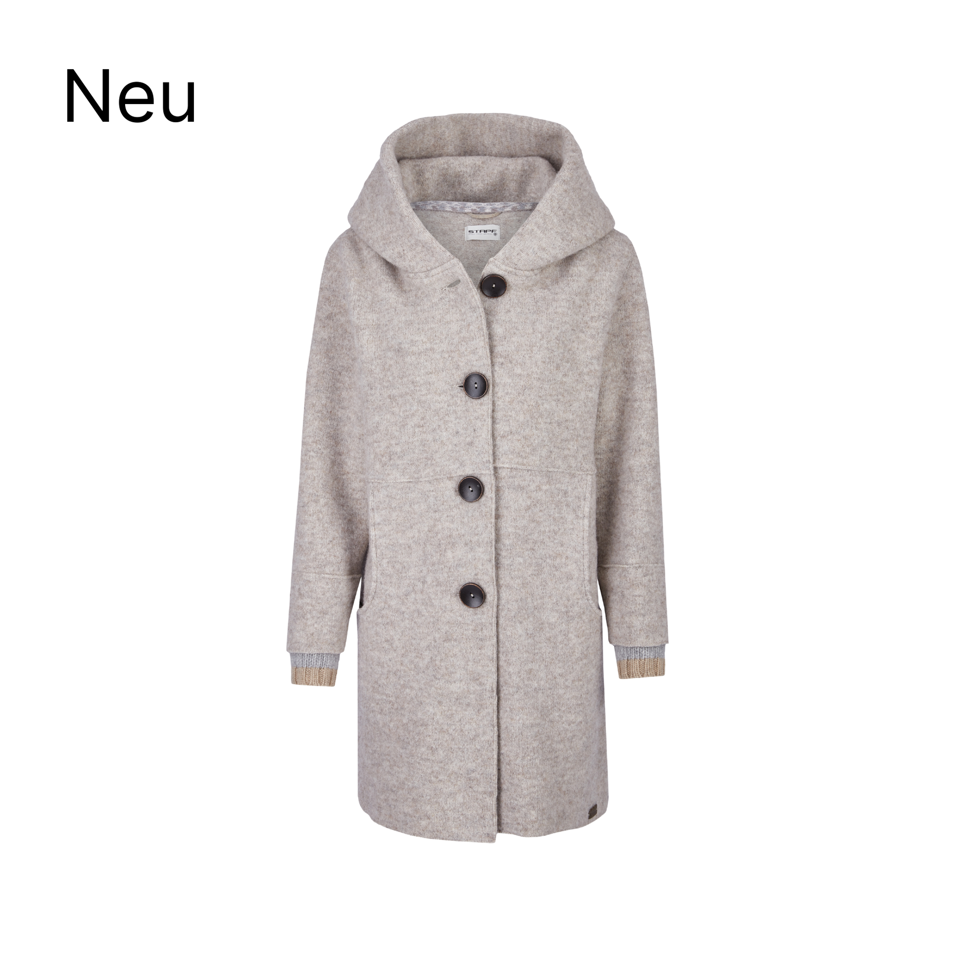 Annika - der leger geschnittene Mantel begeistert mit seinr großen Kapuze, der offenkantigen Verarbeitung und den großen Knöpfen. EIn besonderer Eyecatcher ist aber die gemusterte Jacquardborte, die der Kapuze zusätzlich einen Rahmen gibt! Die hochwertige Schurwolle ist strapazierfähig und wasserabweisend! Die gewlkte Struktur aus reiner Wolle schützt vor Kälte! Gestrickt und gewalkt in Tirol! Passform: Oversized!