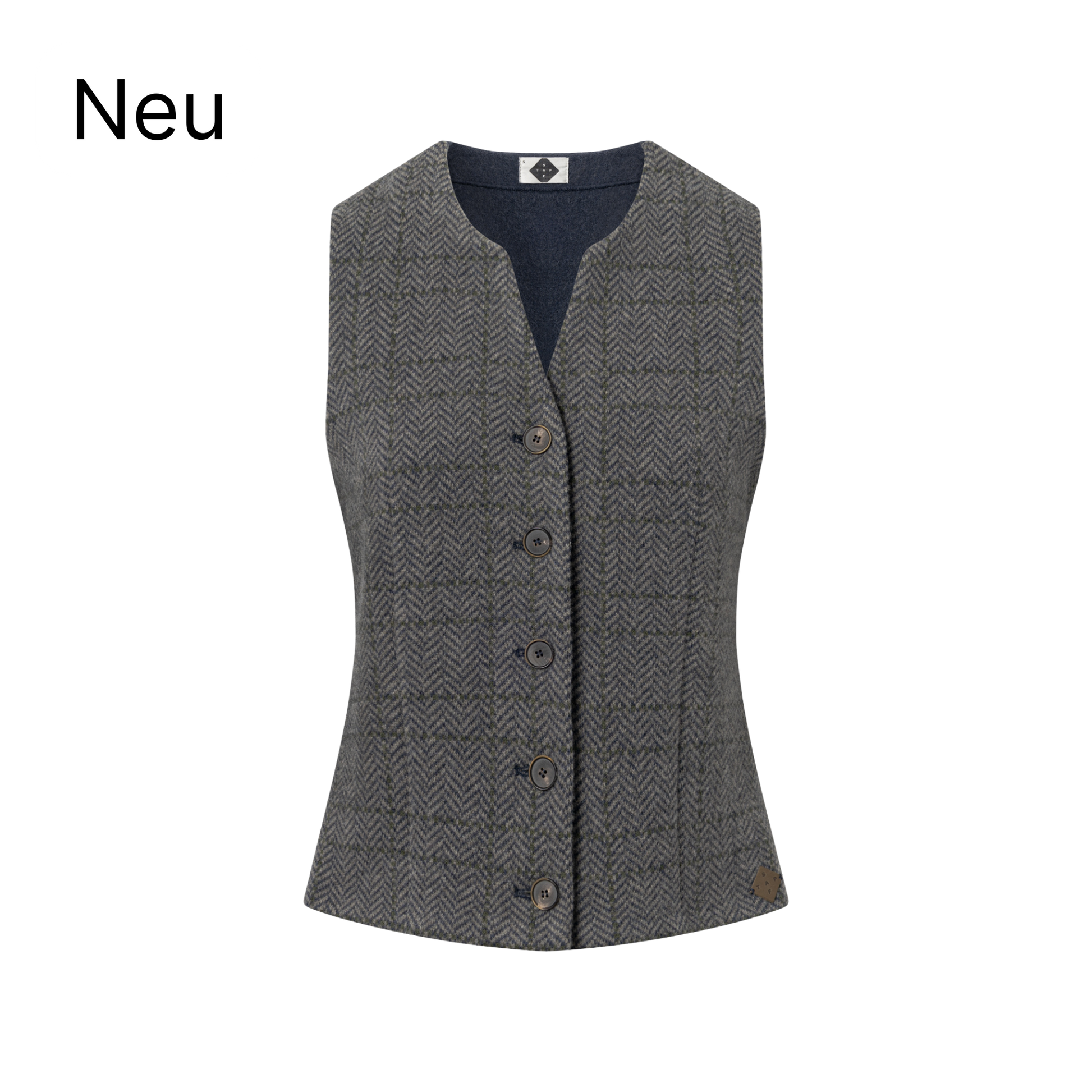 GUNDE – Eine figurbetonte Weste, inspiriert von klassischen Dirndl-Miedern – mit metallischen Knöpfen und einem U-förmigen V-Ausschnitt, der dem Look eine moderne Note verleiht. Feine Falten im unteren Rücken sorgen für eine schöne Form und dezente Bewegung. Ob zur Bluse, zum Kleid oder ganz lässig über einem Shirt: GUNDE ist ein vielseitiges Stück mit Charakter. Gestrickt und gewalkt in Wörgl, Tirol.